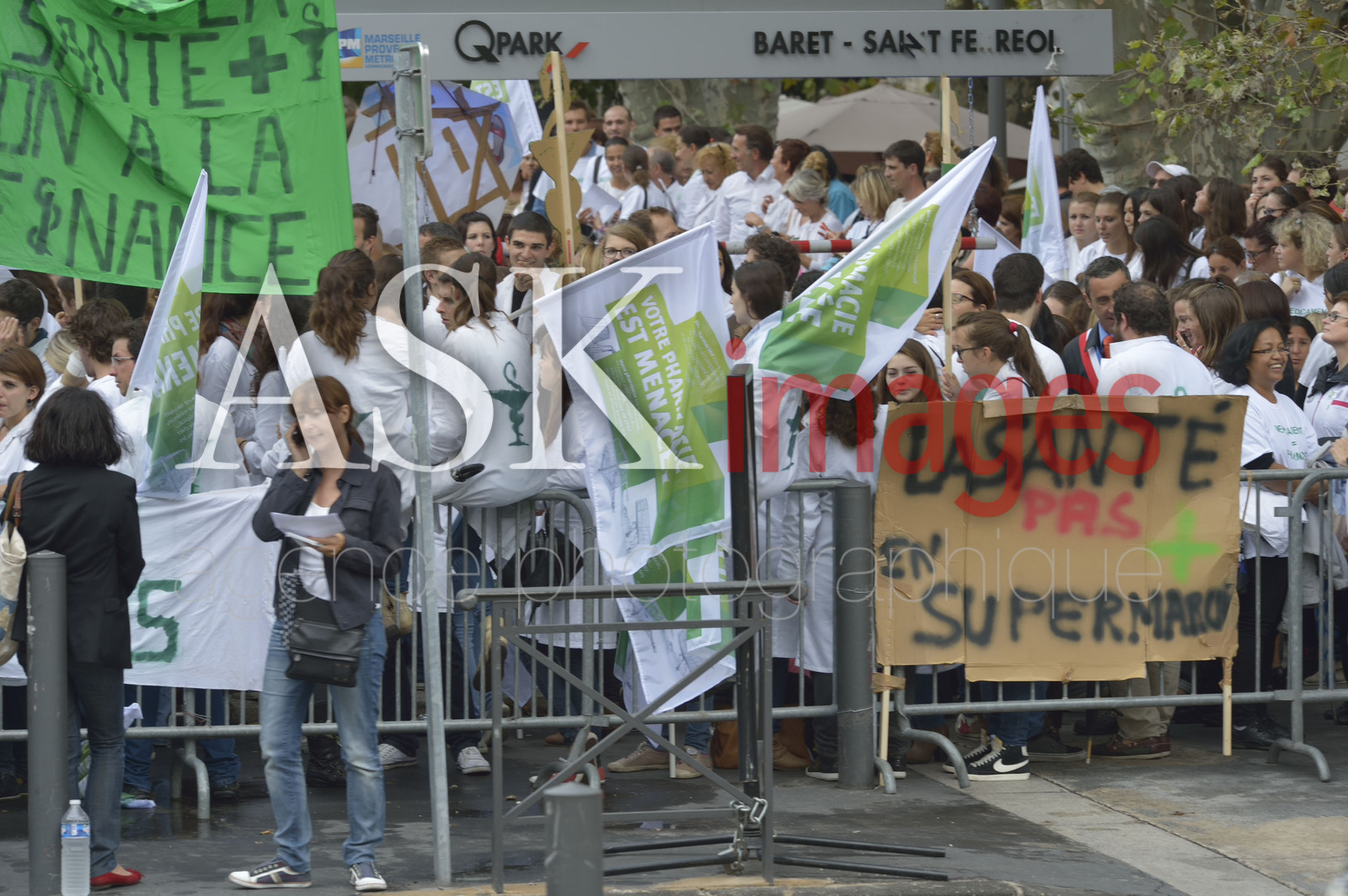 | Description | Manifestation devant la préfecture de Marseille le 30 septembre 2014 des professions libérales, Pharmaciens, kinésithérapeutes, notaires ... |
