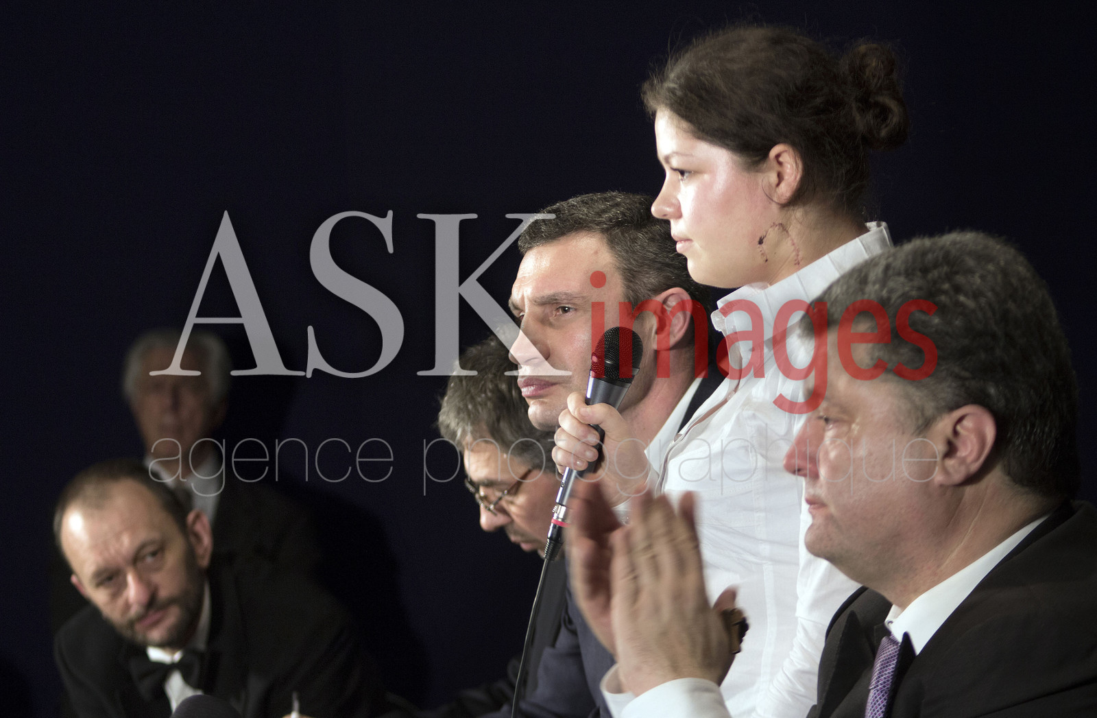 DescriptionPetro Porochenko, candidat a l'election presidentielle ukrainienne lors de l'organisation a Paris, au Cinema Le Saint-Germain, d'un debat sur l'Ukraine et la Crimee, anime par Bernard-Henri Levy et Galia Ackerman avec les invites suivants : outre les deux candidats a l’election presidentielle (Petro Porochenko et Vitali Klitschko), Сonstantin Sigov, philosophe et directeur du European Research Center ; Leonid Finberg, directeur du Center of Jewish Studies ; Oleksiy Panych, professeur de philosophie a la Donetsk University ; Yelizaveta Shaposhnik et Olesya Zhukovskaya, heroines du Maidan.