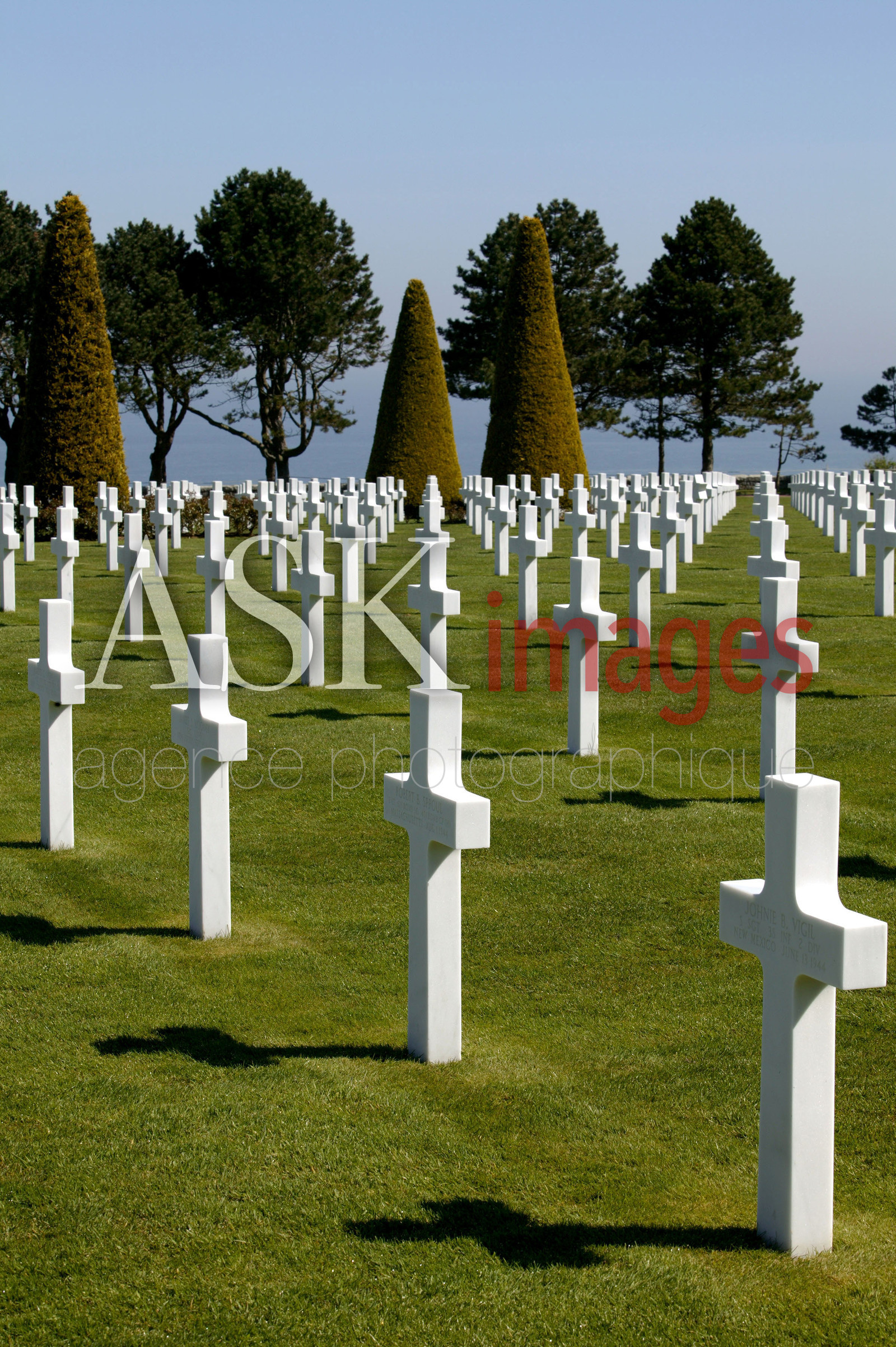 | Description | Calvados Le cimetiere americain de Colleville/ Saint Laurent, surplombant la plage d'Omaha 9387 soldats americains y reposent |