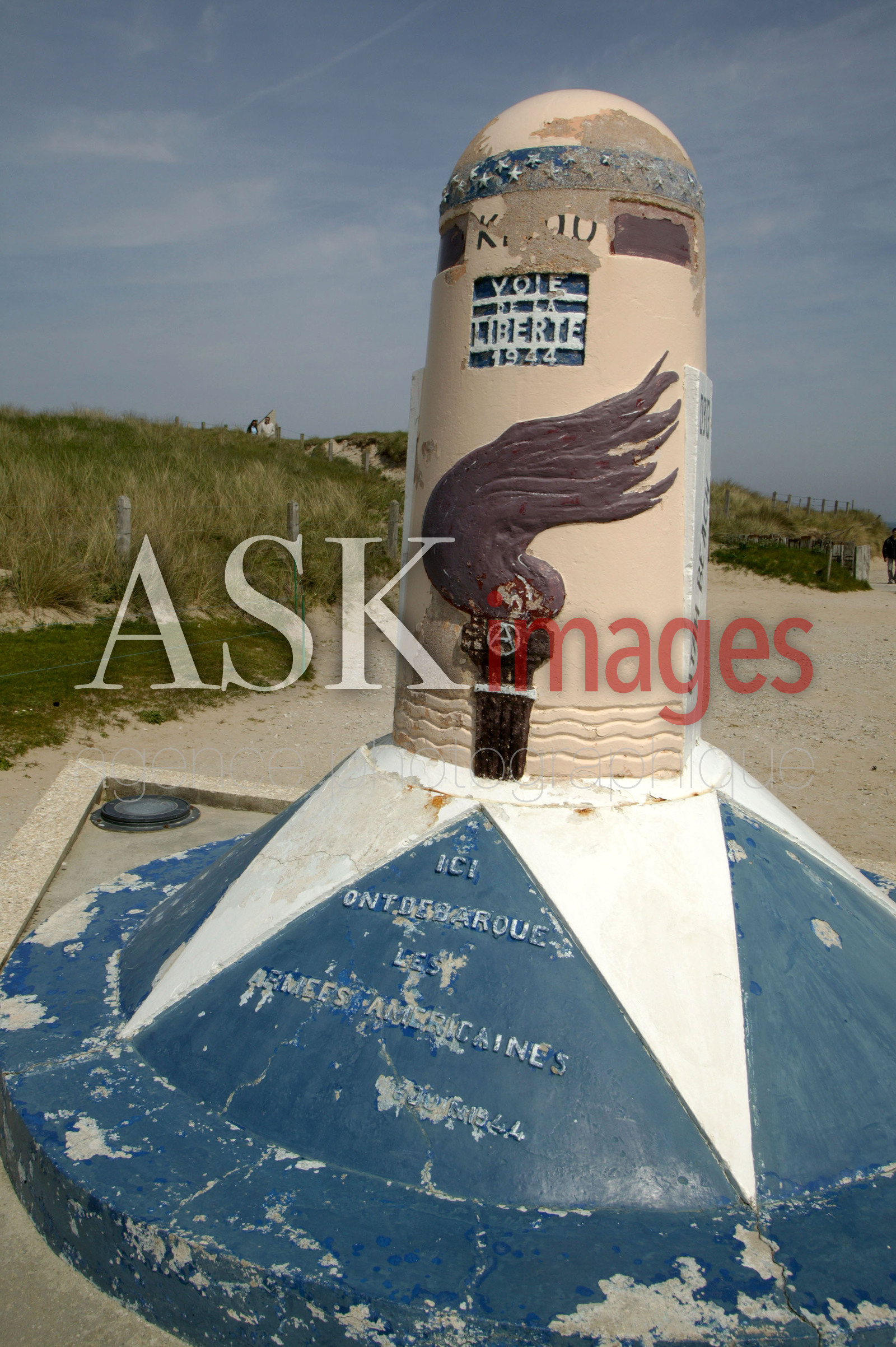 | Description | Calvados Utah beach, la borne 00 de la Voie de la liberte est la premiere de l'itineraire de l'armee americaine jusqu'e Bastogne, en Belgique |