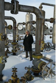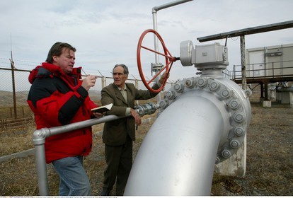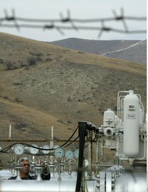 ARMENIA. Worker operates a stop-cock at the gas station ,the first gas station on Armenia territory after Georgia, of ARMGASPROM gas system. Gas station is placed on the Armenia- Georgia- Azerbaijan border.