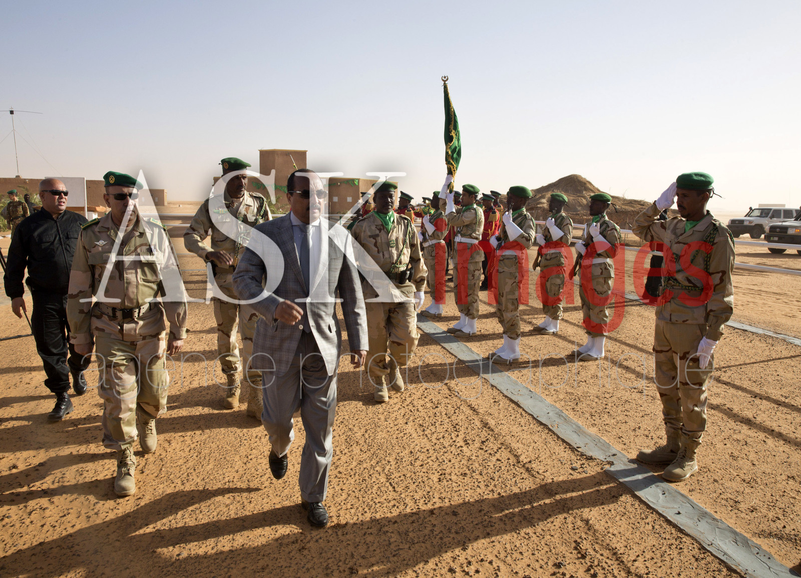 | Description | The president of Mauritania, Mohamed Ould Abdel Aziz visits the military base of Le Meye in mauritanian desert |
