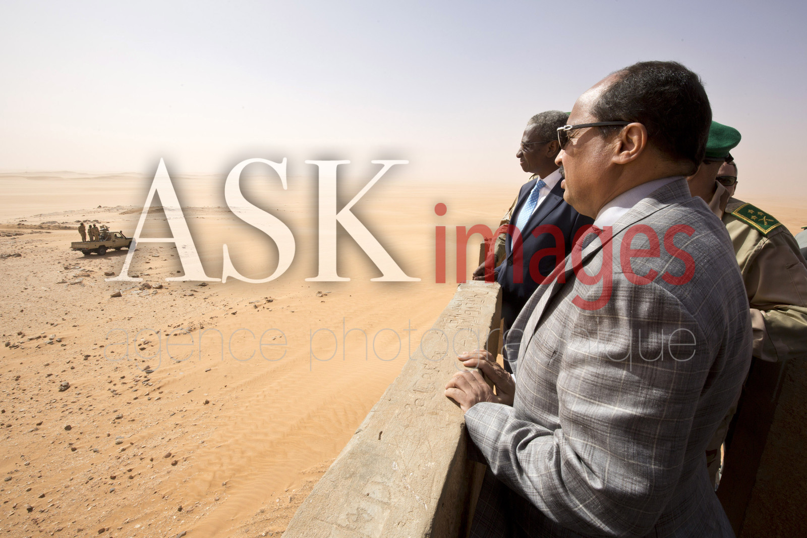 | Description | The president of Mauritania, Mohamed Ould Abdel Aziz visits the military base of Le Meye in mauritanian desert |