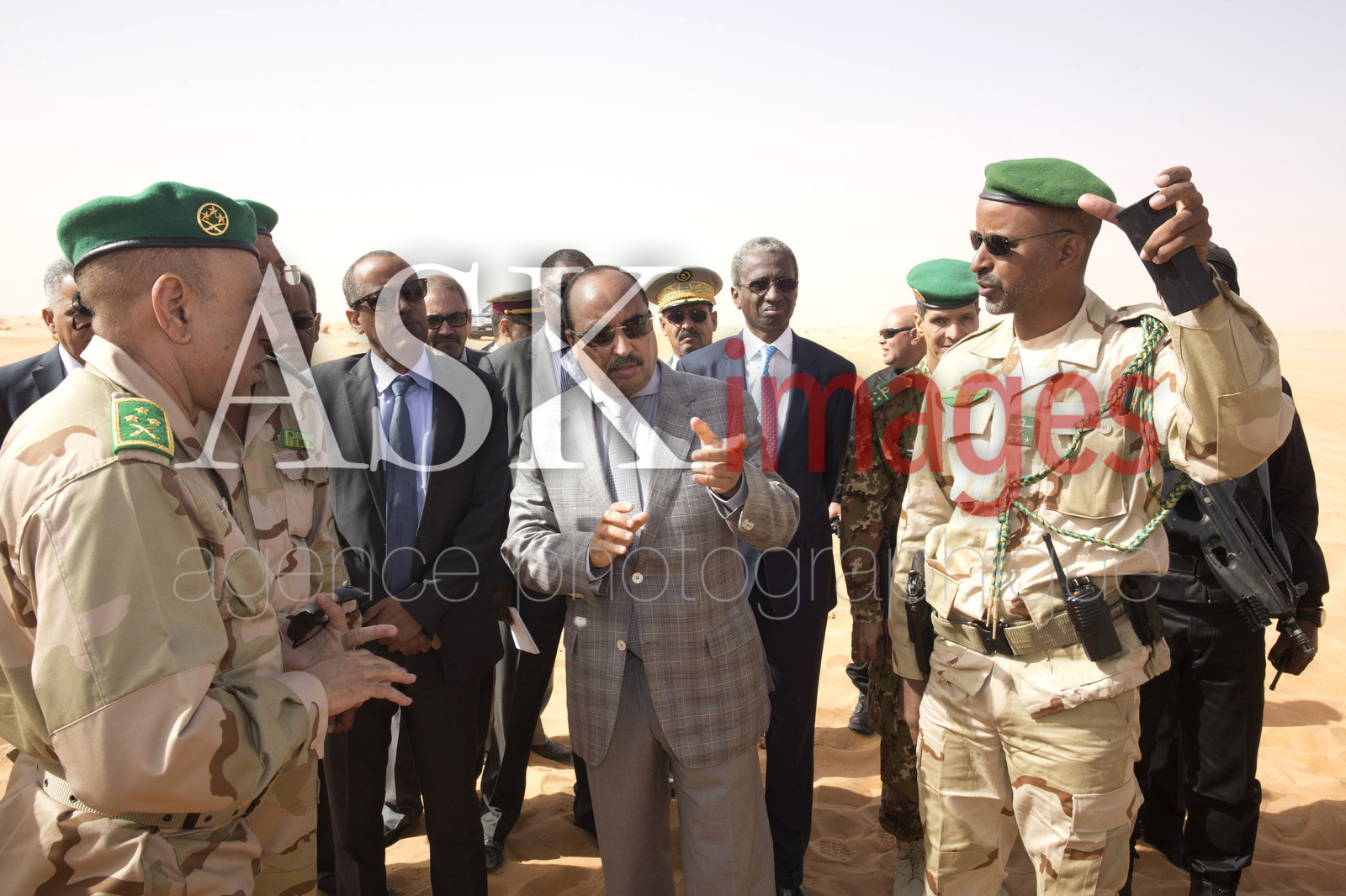 | Description | The president of Mauritania, Mohamed Ould Abdel Aziz visits the military base of Le Meye in mauritanian desert |