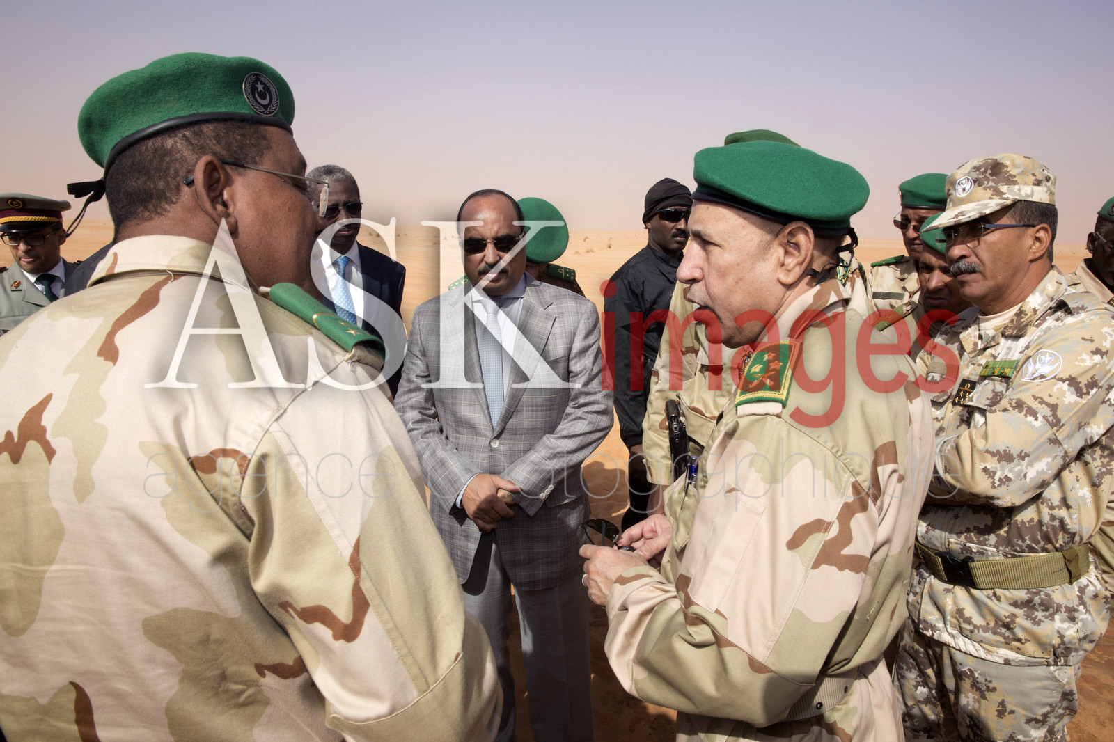 | Description | The president of Mauritania, Mohamed Ould Abdel Aziz visits the military base of Le Meye in mauritanian desert |
