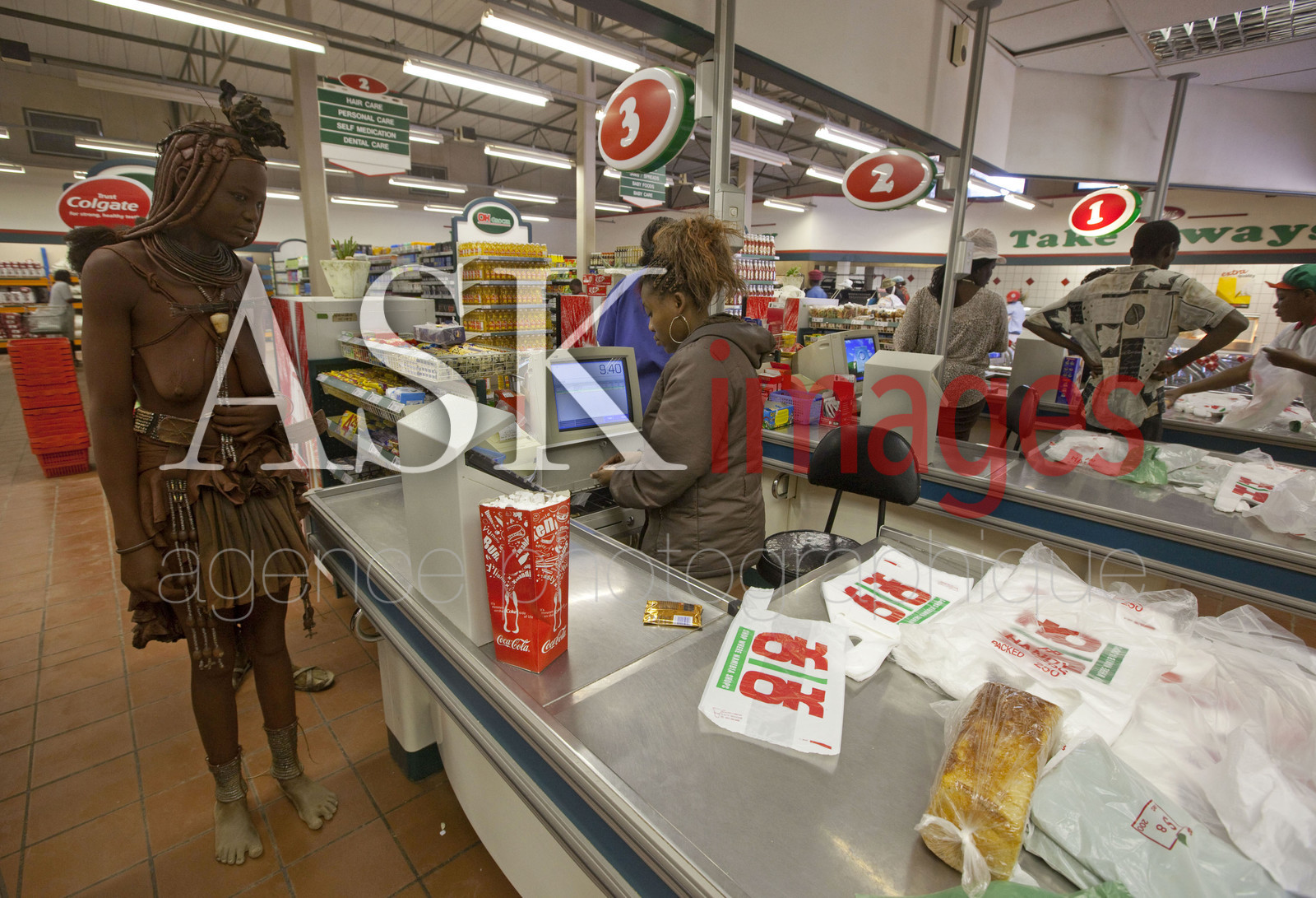 | Description | LES HIMBA sont un peuple de pasteurs nomades de Namibie. Ils se parent volontiers de colliers en cuir et d'anneaux en laiton et enduisent leur peau d'une pate a base de beurre et de bois rouge. Les femmes viennent faire leurs courses dans la ville de Opuwo *** THE HIMBA are a nomadic people of Namibia. They adorn themselves with leather collars and brass rings and coat their skin with a paste made of butter and red wood. The Himba women come to Opuwo for shopping, |