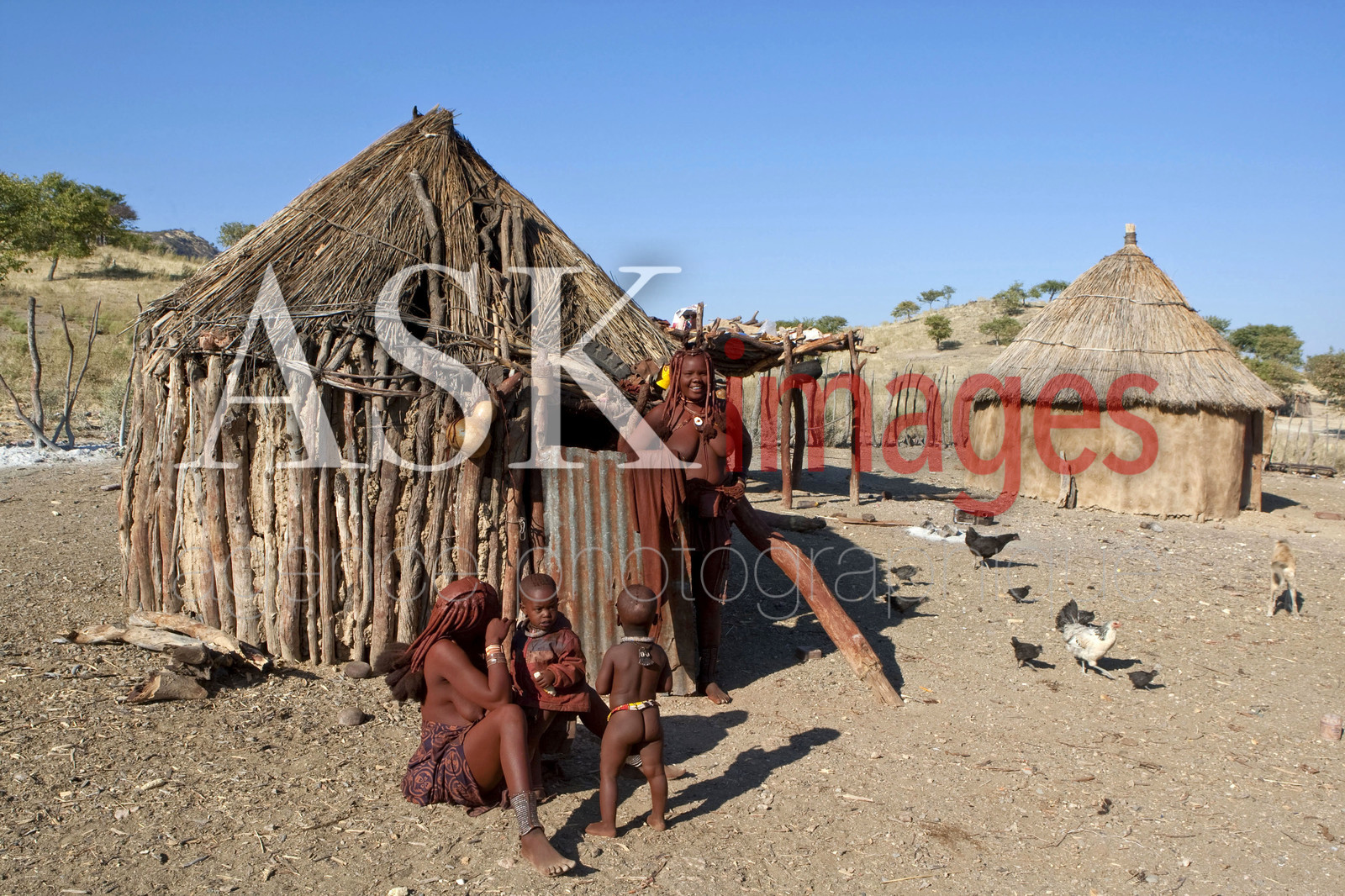 DescriptionLES HIMBA sont un peuple de pasteurs nomades de Namibie. Ils se parent volontiers de colliers en cuir et d'anneaux en laiton et enduisent leur peau d'une pate a base de beurre et de bois rouge. les cases appellees ''pontok'' sont faites de branches et branchages recouverts d'un melange d'argile et de bouse sechee *** THE HIMBA are a nomadic people of Namibia. They adorn themselves with leather collars and brass rings and coat their skin with a paste made of butter and red wood, Namibia. The huts are called "pontok" and are made with tree branches covered with mixted with clay and dung