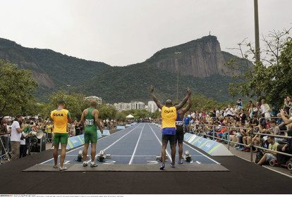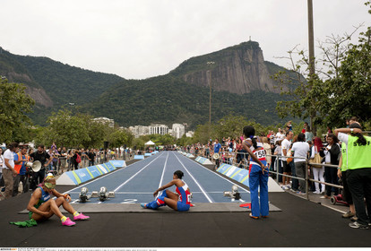 • Brazil / Rio de Janeiro / 2015 / Olympic Games 2016 Preparation / 100-metre dash during a show of Rio 2016 education program Transforma in Lagoa. The occasion was to promote paralympic games...© Lara Ciarabellini / Anzenberger