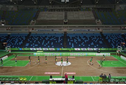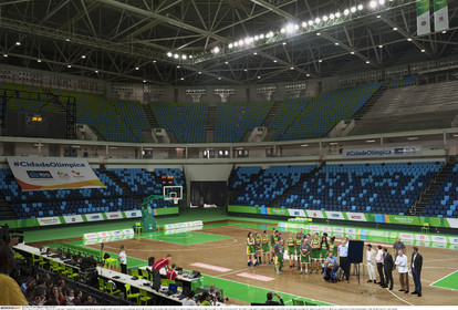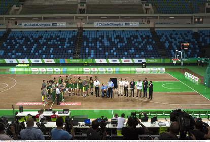 • BRAZIL / Rio de Janeiro / 15.01.2016. .The Brazilian feminine basketball team selection during the inauguration of the Arena Carioca 1 in the Olympic Park in Rio de Janeiro on January 15, 2016. After the official show, the team warmed up before the International Women Basketball Tournament as a test event for the Olympic Games RIO2016..The Arena Carioca 1 will host the competitions of olympic and paralympic basketball, and paralympic rugby during the Olympic games RIO2016...© Lara Ciarabellini / Anzenberger