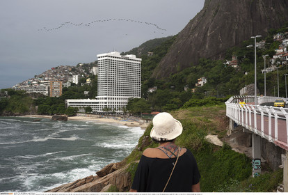 • BRAZIL / Rio de Janeiro / 17.01.2016..A woman looking at the new bicycle lane Tim Maia along the Avenida Niemeyer, on the day it was inaugurated by Rio de Janeiro mayor Eduardo Paes. The new bicycle lane Tim Maia, which links Leblon and S„o Conrado neighbourhoods and run along the Atlantic coastline, is one of the infrastructural projects of the Olympic games RIO2016...© Lara Ciarabellini / Anzenberger