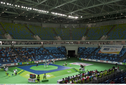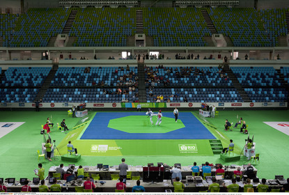 • BRAZIL / Rio de Janeiro / 21.02.2016 / Olympic Games 2016 Preparation / The Arena Carioca 1 during the Aquece Rio Test Event of Taekwondo, counted as International Taekwondo Tournament (WTF), in the Olympic Park in Barra Barra de Tijuca, Rio de Janeiro. The Olympic Games start on August 5, 2016...© Lara Ciarabellini / Anzenberger