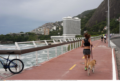 • BRAZIL / Rio de Janeiro / 17.01.2016.Runner on the new bicycle lane Tim Maia on the day it was inaugurated by Rio de Janeiro mayor Eduardo Paes. The new bicycle lane Tim Maia, which links Leblon and S„o Conrado neighbourhoods and run along the Atlantic coastline, is one of the infrastructural projects of the Olympic games RIO2016...© Lara Ciarabellini / Anzenberger