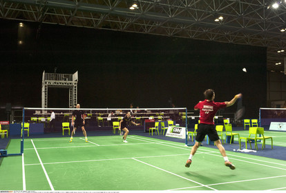 • BRAZIL / Rio de Janeiro / ..Yonex Brazil Open valid as a badminton test event in pavilion 4 in RioCentro, one of the installations for the Olympic Games of 2016 in Rio de Janeiro..Austrian team training..© Lara Ciarabellini / Anzenberger