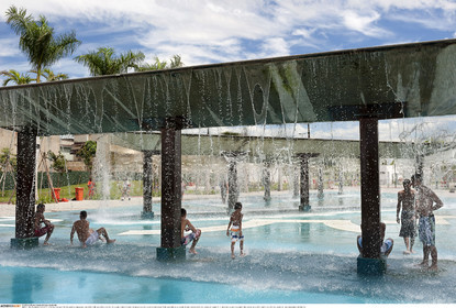• BRAZIL / Rio de Janeiro / 21.02.2016 / Olympic Games 2016 Preparation / Entrance of the Maria Lenz Aquatics Centre in the Olympic Park in Barra de Tijuca, Rio de Janeiro. Maria Lenz Aquatics Centre will host diving and synchronized swimming during the Olympic Games, start on August 5, 2016...© Lara Ciarabellini / Anzenberger
