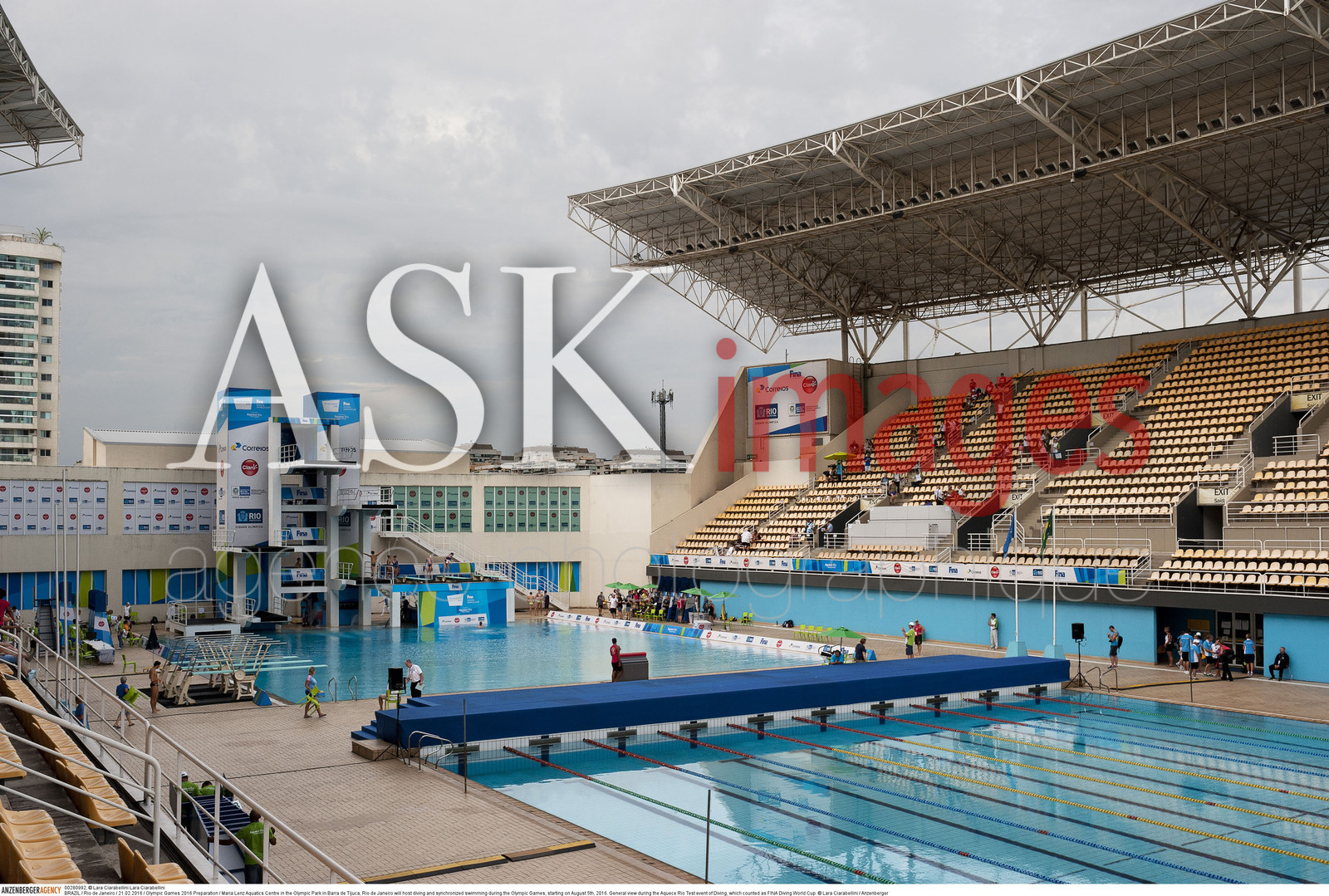 | Description | BRAZIL / Rio de Janeiro / 21.02.2016 / Olympic Games 2016 Preparation / Maria Lenz Aquatics Centre in the Olympic Park in Barra de Tijuca, Rio de Janeiro will host diving and synchronized swimming during the Olympic Games, starting on August 5th, 2016. General view during the Aquece Rio Test event of Diving, which counted as FINA Diving World Cup...© Lara Ciarabellini / Anzenberger |