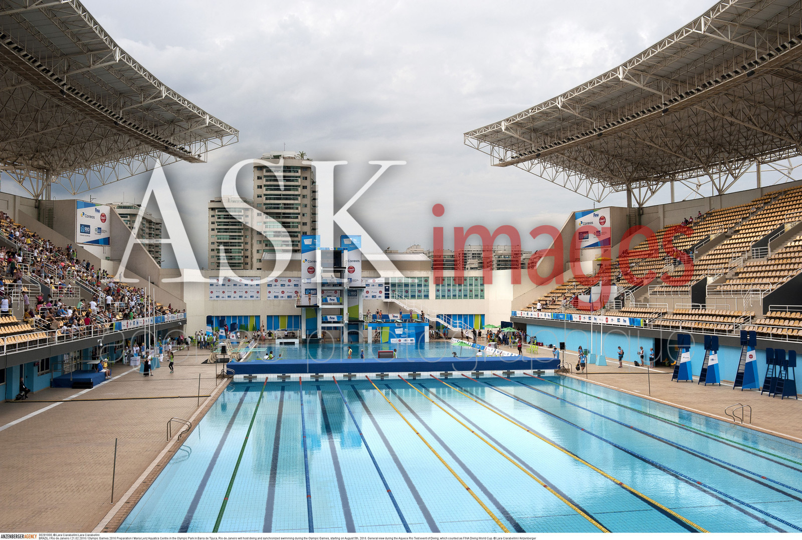 | Description | BRAZIL / Rio de Janeiro / 21.02.2016 / Olympic Games 2016 Preparation / Maria Lenz Aquatics Centre in the Olympic Park in Barra de Tijuca, Rio de Janeiro will host diving and synchronized swimming during the Olympic Games, starting on August 5th, 2016. General view during the Aquece Rio Test event of Diving, which counted as FINA Diving World Cup...© Lara Ciarabellini / Anzenberger |