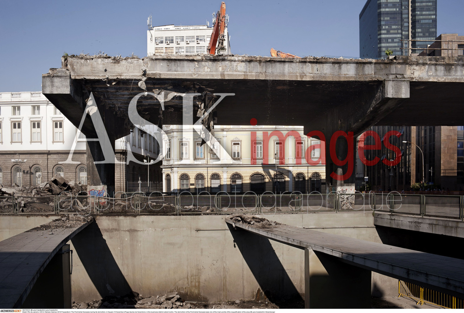 | Description | Brazil / Rio de Janeiro / 2014 / Olympic Games 2016 Preparation / The Perimetral Overpass during its demolition, in Square 15 November (PraÁa Quinze de Novembro), in the business district called Centro. The demolition of the Perimetral Overpass was one of the main points of the requalification of the area...© Lara Ciarabellini / Anzenberger |