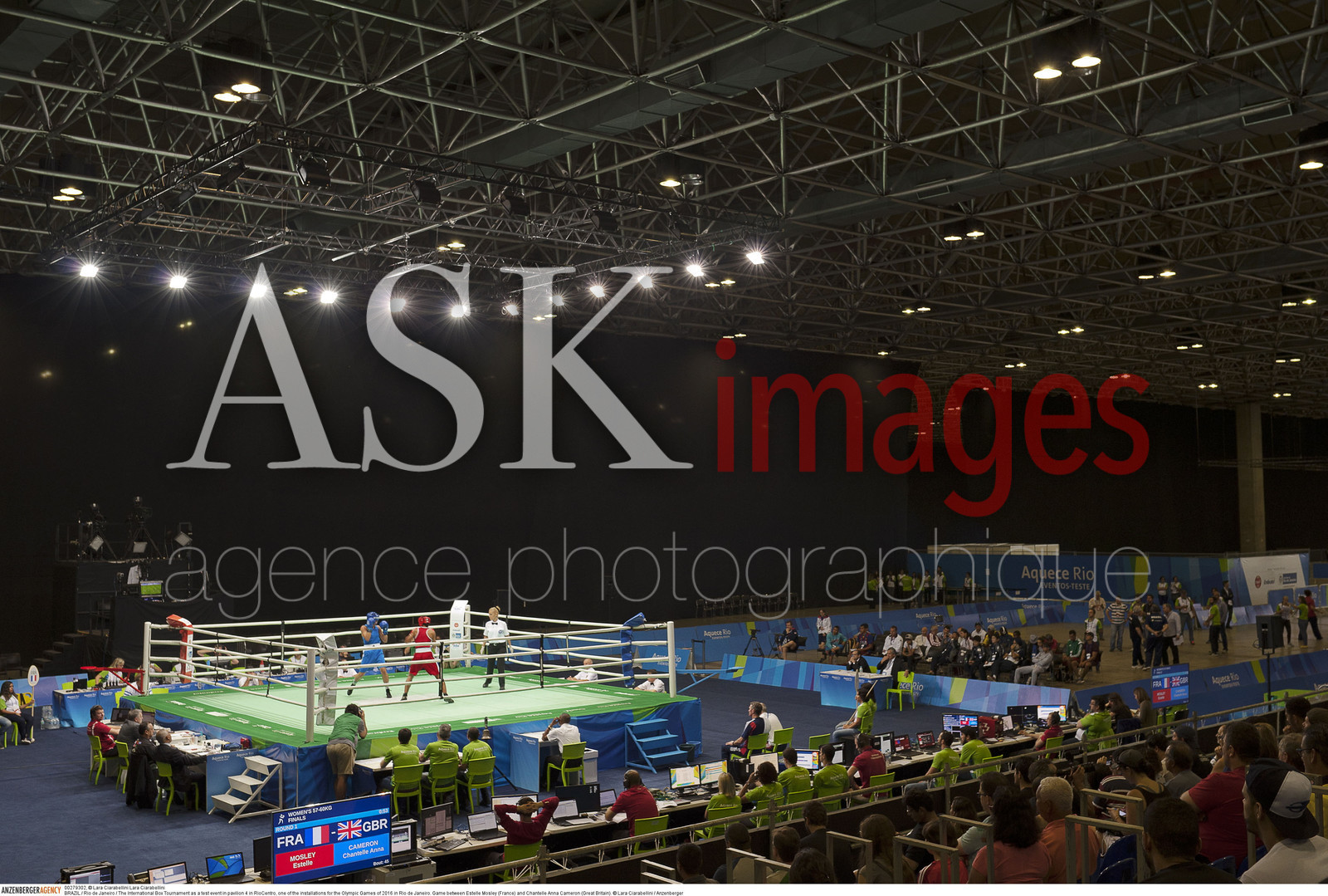 | Description | BRAZIL / Rio de Janeiro / ..The International Box Tournament as a test event in pavilion 4 in RioCentro, one of the installations for the Olympic Games of 2016 in Rio de Janeiro..Game between Estelle Mosley (France) and Chantelle Anna Cameron (Great Britain)...© Lara Ciarabellini / Anzenberger |