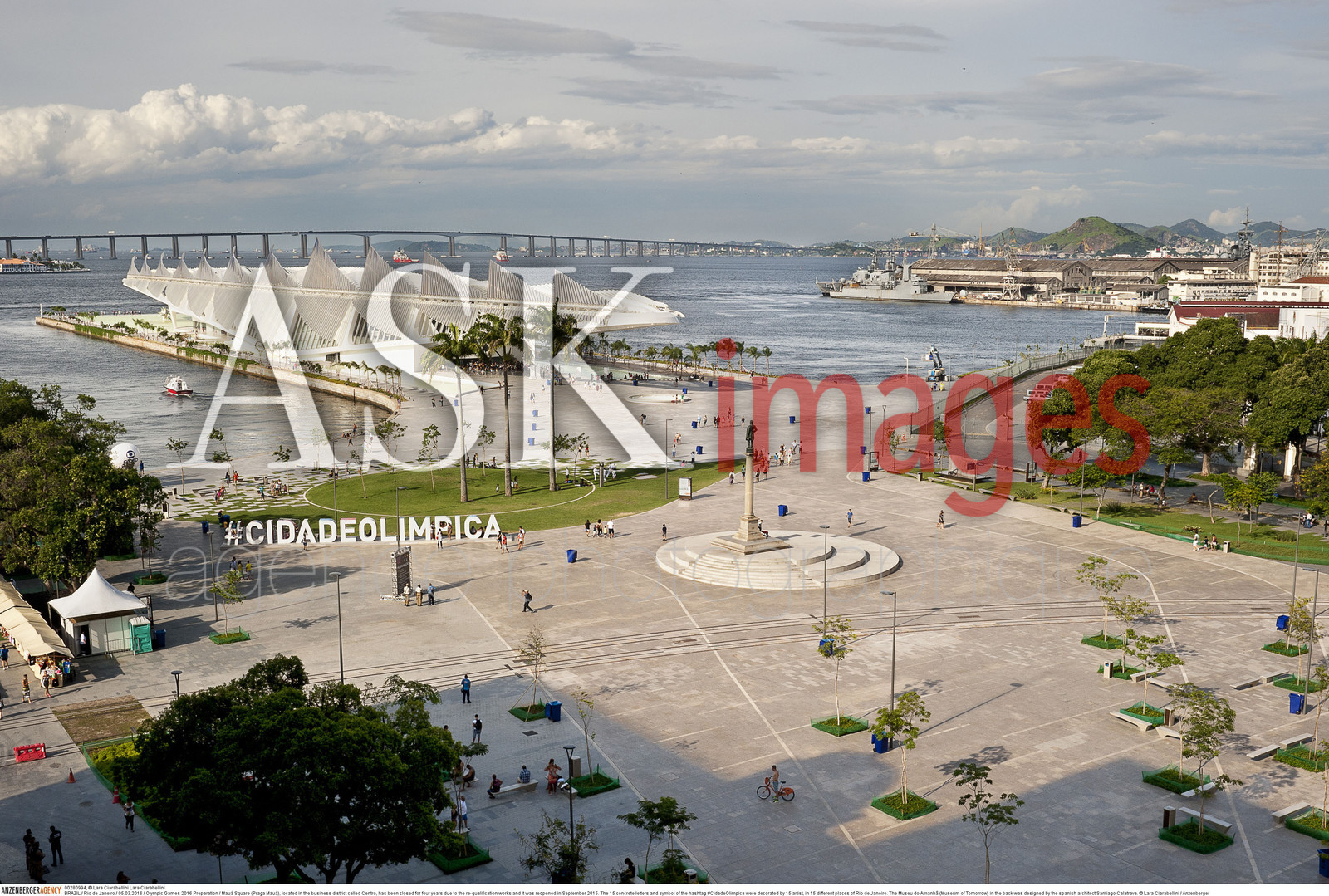 | Description | BRAZIL / Rio de Janeiro / 05.03.2016 / Olympic Games 2016 Preparation / Mau· Square (PraÁa Mau·), located in the business district called Centro, has been closed for four years due to the re-qualification works and it was reopened in September 2015. The 15 concrete letters and symbol of the hashtag #CidadeOlimpica were decorated by 15 artist, in 15 different places of Rio de Janeiro. The Museu do Amanh„ (Museum of Tomorrow) in the back was designed by the spanish architect Santiago Calatrava...© Lara Ciarabellini / Anzenberger |