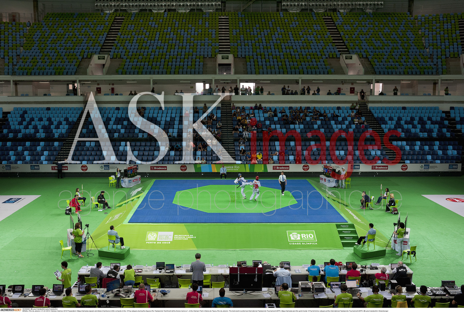 | Description | BRAZIL / Rio de Janeiro / 21.02.2016 / Olympic Games 2016 Preparation / Mayu Hamada (Japan) and Aziza Chambers (USA) compete in the -57Kg category during the Aquece Rio Taekwondo Test Event at the Arena Carioca 1, in the Olympic Park in Barra de Tijuca, Rio de Janeiro. The test event counted as International Taekwondo Tournament (WTF). Mayu Hamada won the gold medal -57Kg feminine category at the International Taekwondo Tournament (WTF)...© Lara Ciarabellini / Anzenberger |