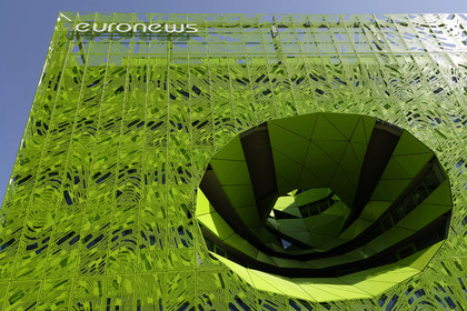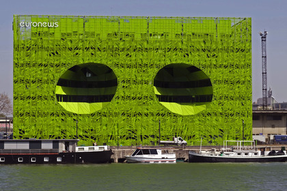 Lyon. Nouveau quartier des Confluences : Batiment Euronews, chaine tv d'informations internationales