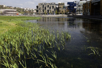 Lyon. Nouveau quartier des Confluences : le port, la Saone