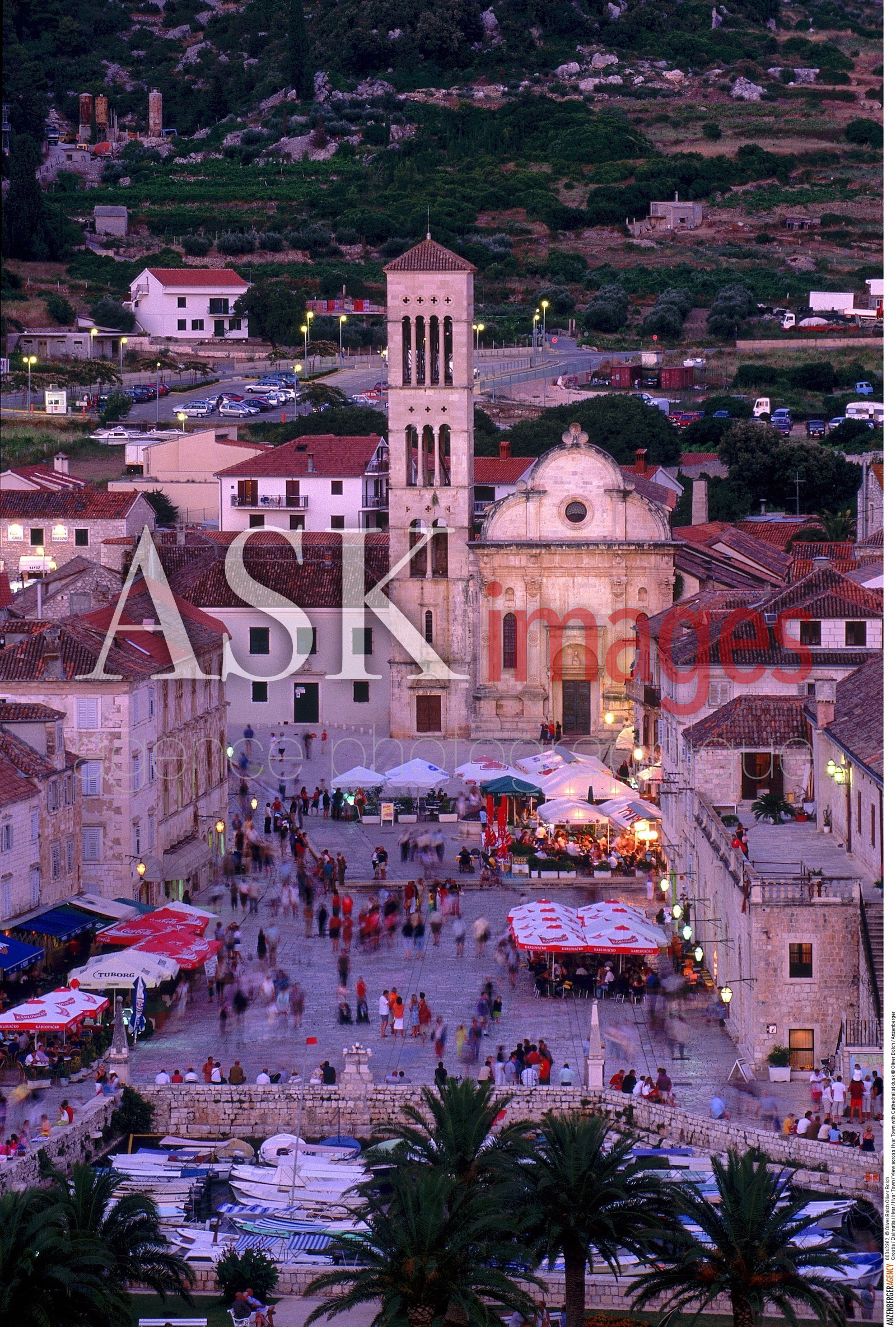 | Description | Croatia / Dalmatia / Hvar / Hvar Town / View across Hvar Town with Cathedral at dusk..© Oliver Bolch / Anzenberger |