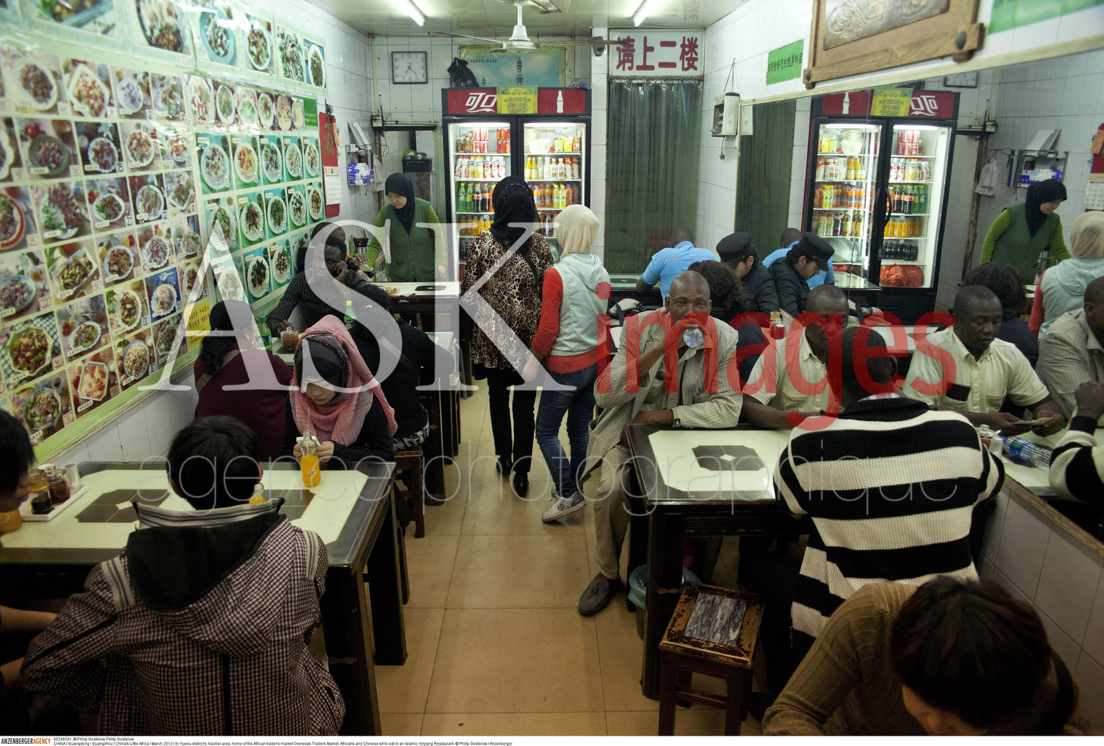 | Description | CHINA / Guangdong / Guangzhou / China's Little Africa / .In Yuexiu district's Xiaobei area, home of the African trader's market Overseas Traders Market, Africans and Chinese sit to eat in an Islamic Xinjiang Restaurant...© Philip Gostelow / Anzenberger |