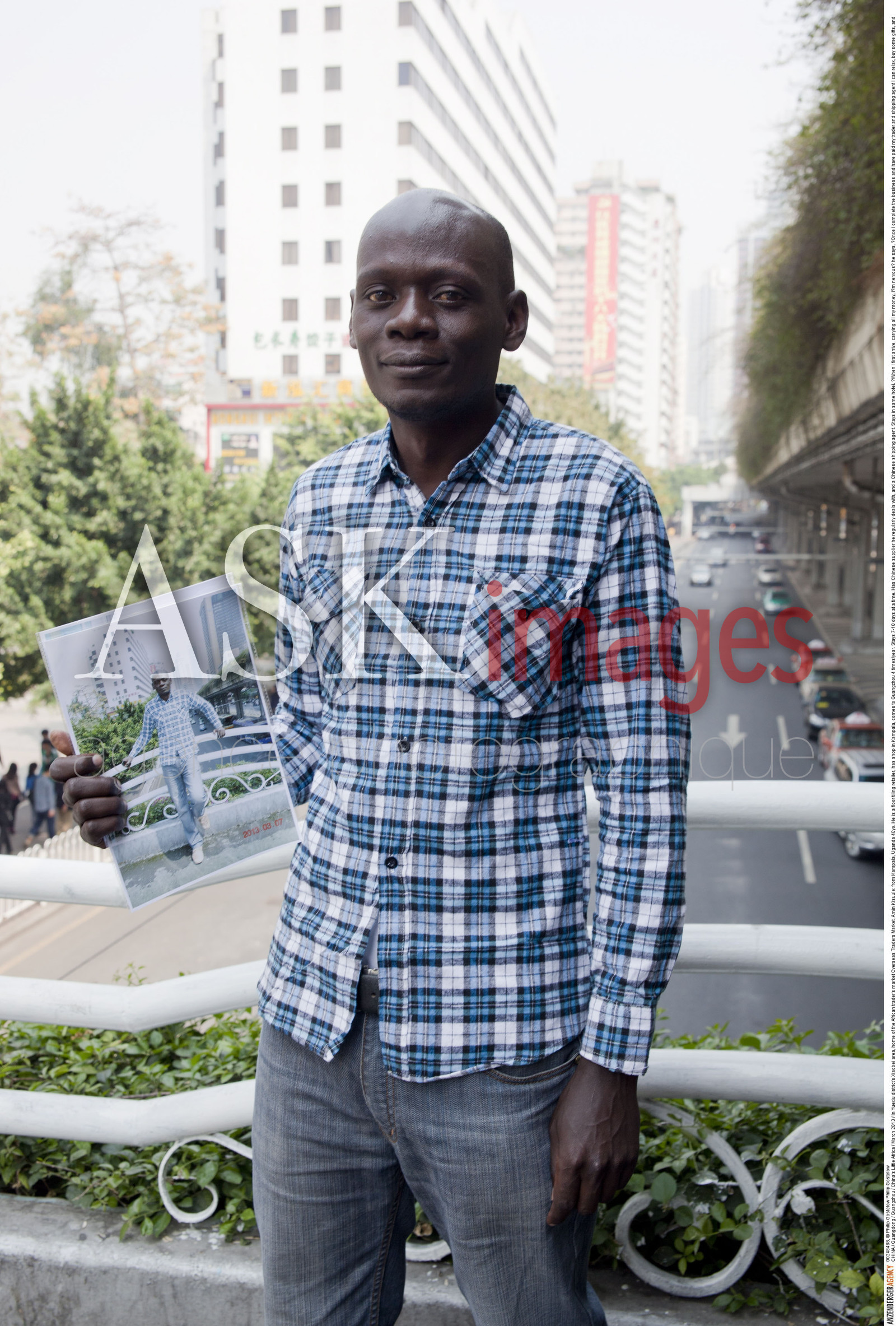 | Description | CHINA / Guangdong / Guangzhou / China's Little Africa / .In Yuexiu district's Xiaobei area, home of the African trader's market Overseas Traders Market, Amin Kisuule: from Kampala, Uganda 40yo. He is a floor tiling retailer, has shop in Kampala, comes to Guangzhou 4 times/year. Stays 7-10 days at a time. Has Chinese supplier he regularly deals with, and a Chinese shipping agent. Stays in same hotel. ?When I first arrive, carrying all my money, I?m nervous? he says, ?Once I complete the business and have paid my trader and shipping agent I can relax, buy some gifts, and (pointing to his photo) get my picture taken for the kids.? The Overseas Traders Market caters almost entirely to African merchants. Amin is one of thousands of African merchants who come to Guangzhou to trade, buying locally produced products and shipping them back to their homelands as wholesalers or retailers. ..© Philip Gostelow / Anzenberger |
