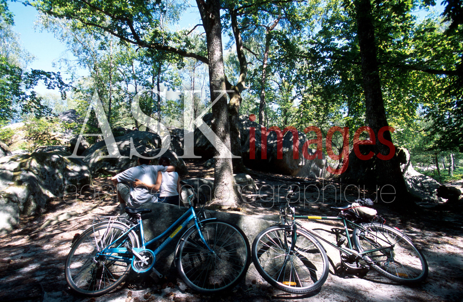 | Description | Barbizon, Fontainebleau forest, Couple in the forest of the Apremont gorges, Ile de France. |