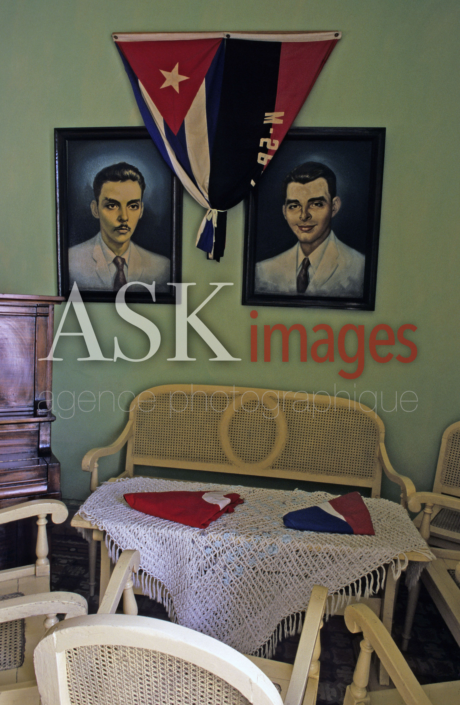 | Description | Interior of the house of Frank Pais, famous martyr of the revolution, portrait of Josue and Frank Pais, Cuba. |