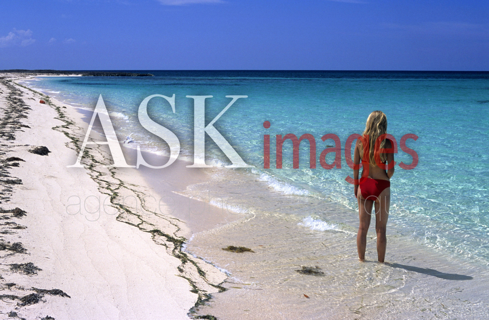 Young woman on beach, Cayo Santa Maria, Cuba.