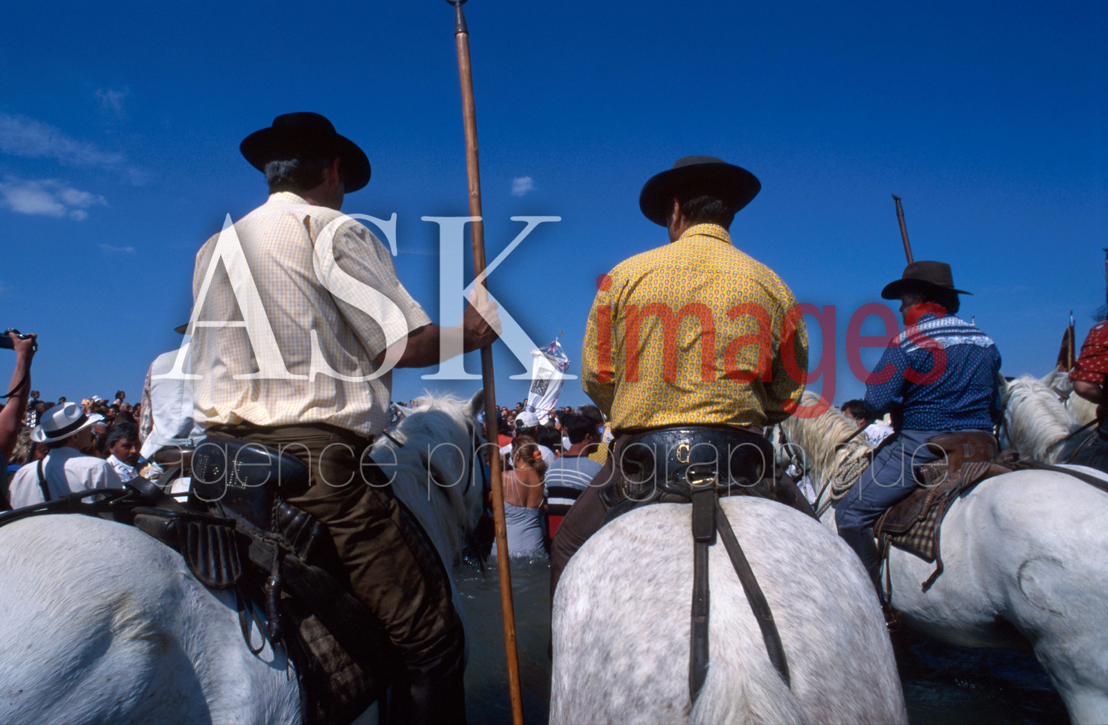 | Description | France, Camargue, Les Saintes Maries de la Mer, Gipsy festival, May, gardians (the cowherds). |