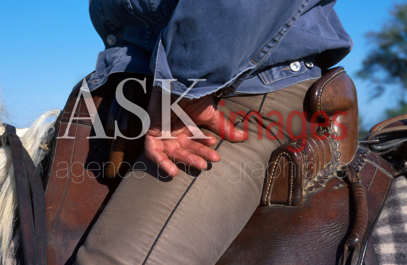 | Description | France, Camargue, Les Saintes Maries de la Mer, gardian (a cowherd) on his saddle .. |