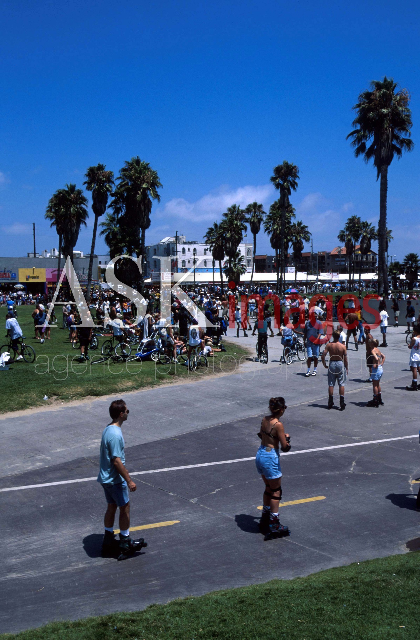 | Description | California, Los Angeles, Venice Beach, people roller skating |