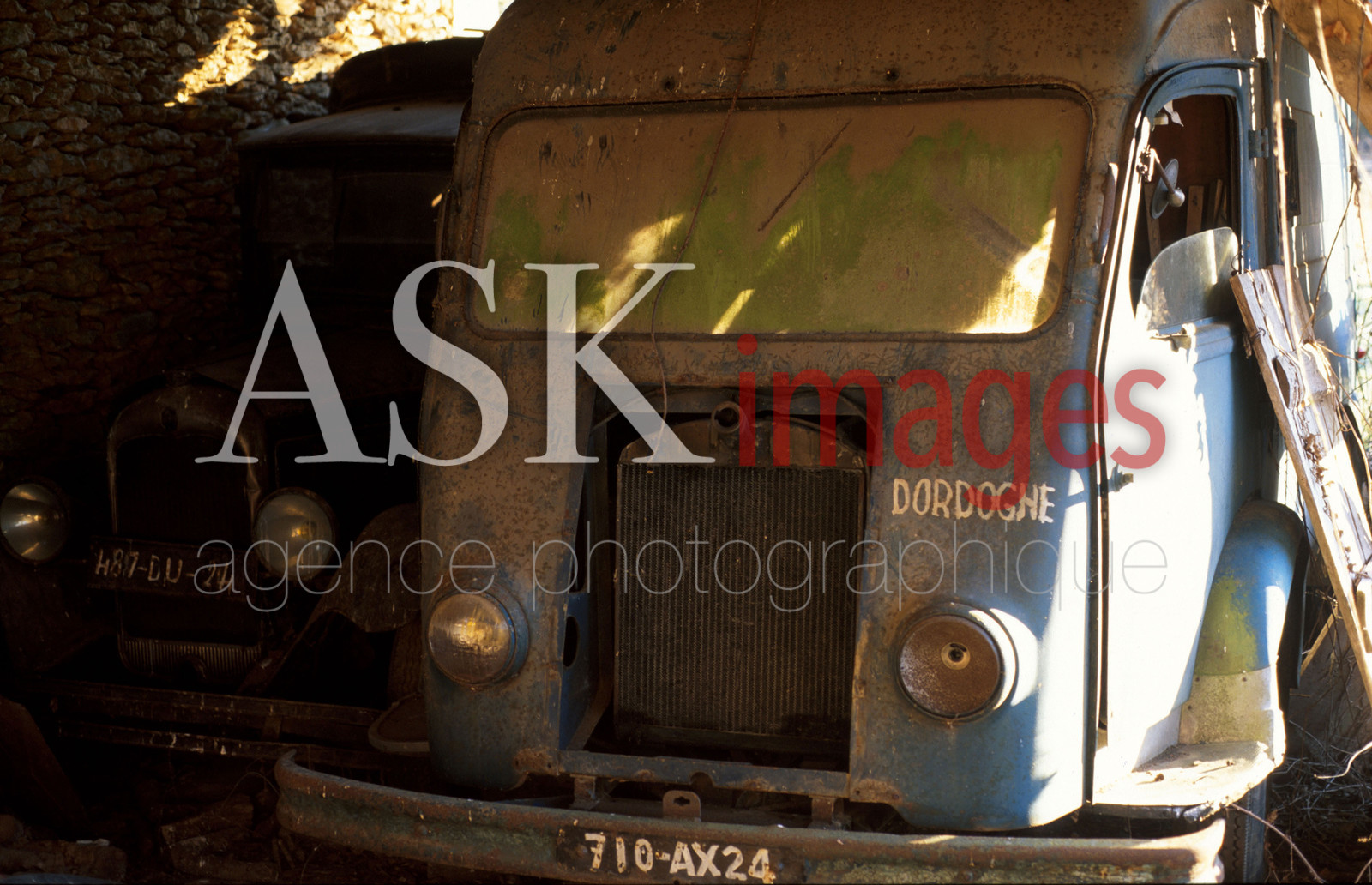 Old light motor lorry in a farm, Dordogne.