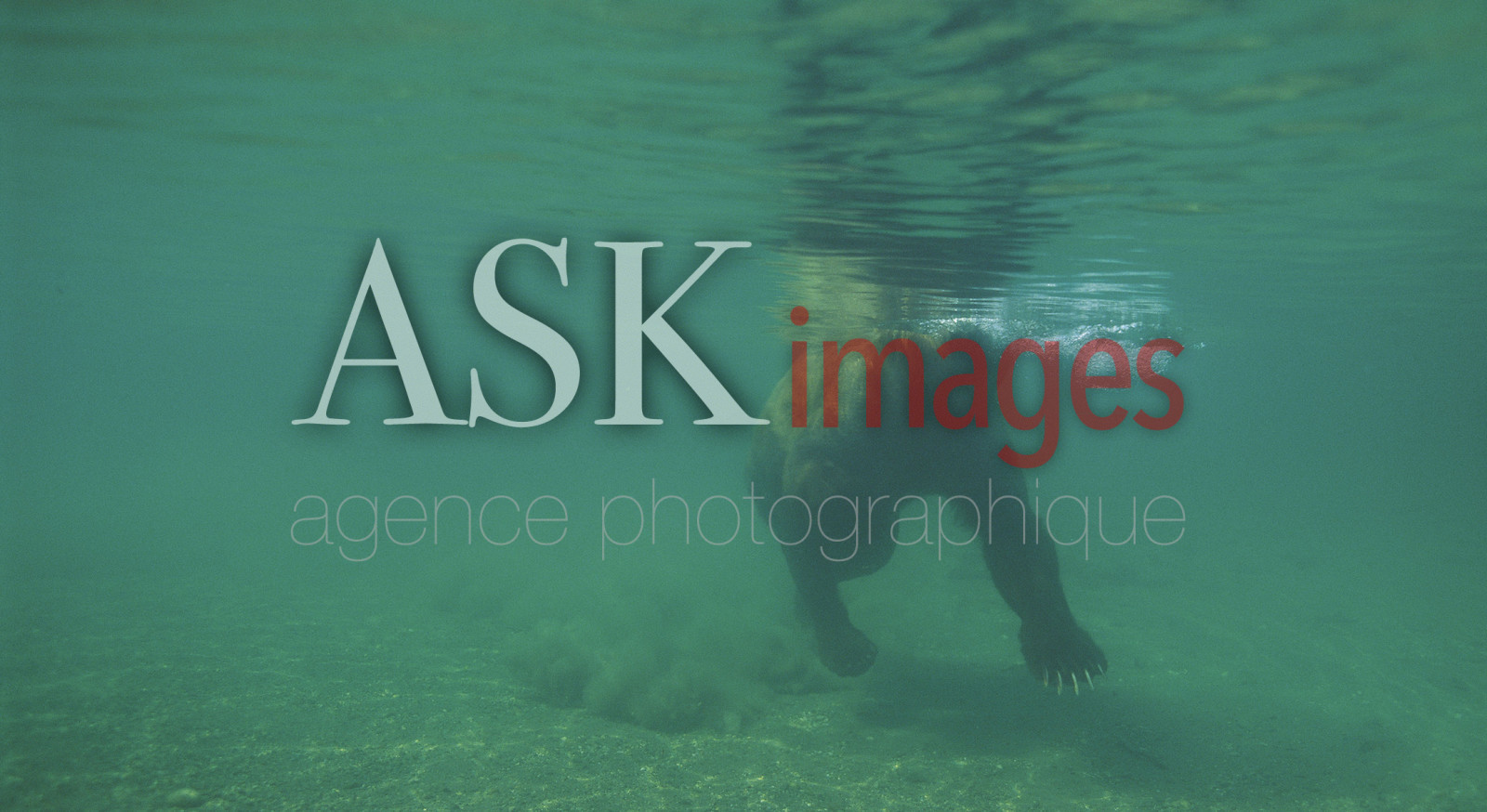 | Description | Brooks river, un ours nage sous l'eau a la recherche de poisson mort. |