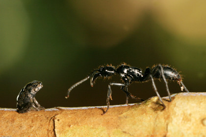 • Fourmi ponera face a un jeune crapaud buffle ( bufo marinus)