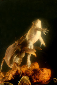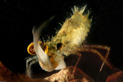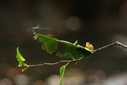 • Une larve de libellule mange un tetard, dans une mare en guyane