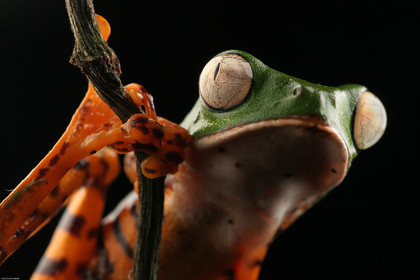 • Portrait de phyllomedusa tomopterna sur une branche, guyane