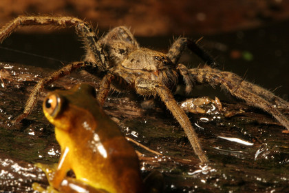 • Une araignee d'eau s'apprete a deguster une hyla minuta, guyane