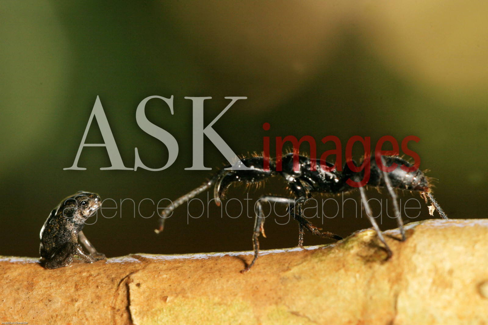 | Description | Fourmi ponera face a un jeune crapaud buffle ( bufo marinus) |