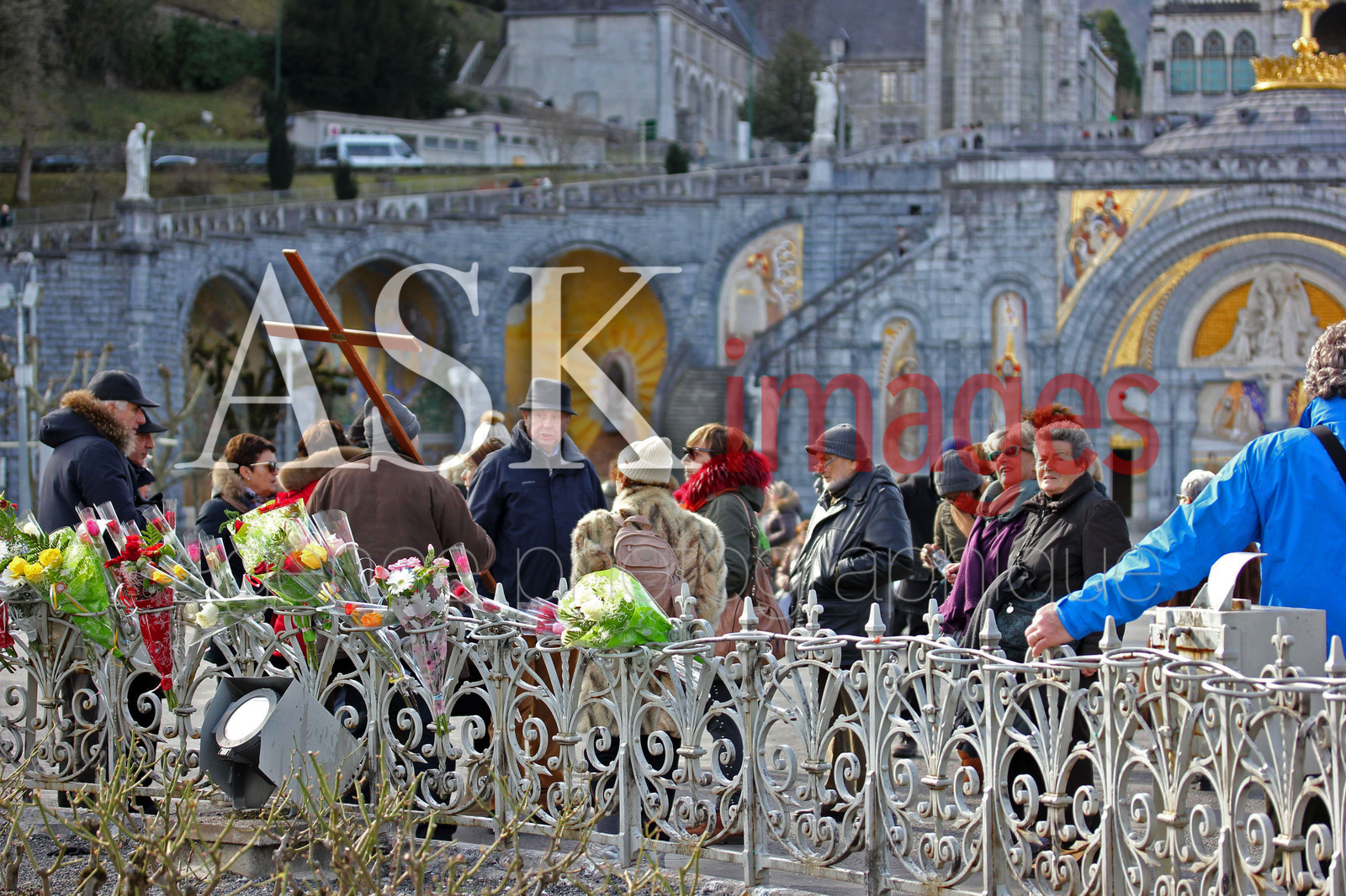 | Description | ITALIAN PILGRIMS WEARING THE CROSS ON THE PARVIS OF OUR LADY OF LOURDES, LOURDES, HAUTES PYRENEES, OCCITANIE, FRANCE, EUROPE |