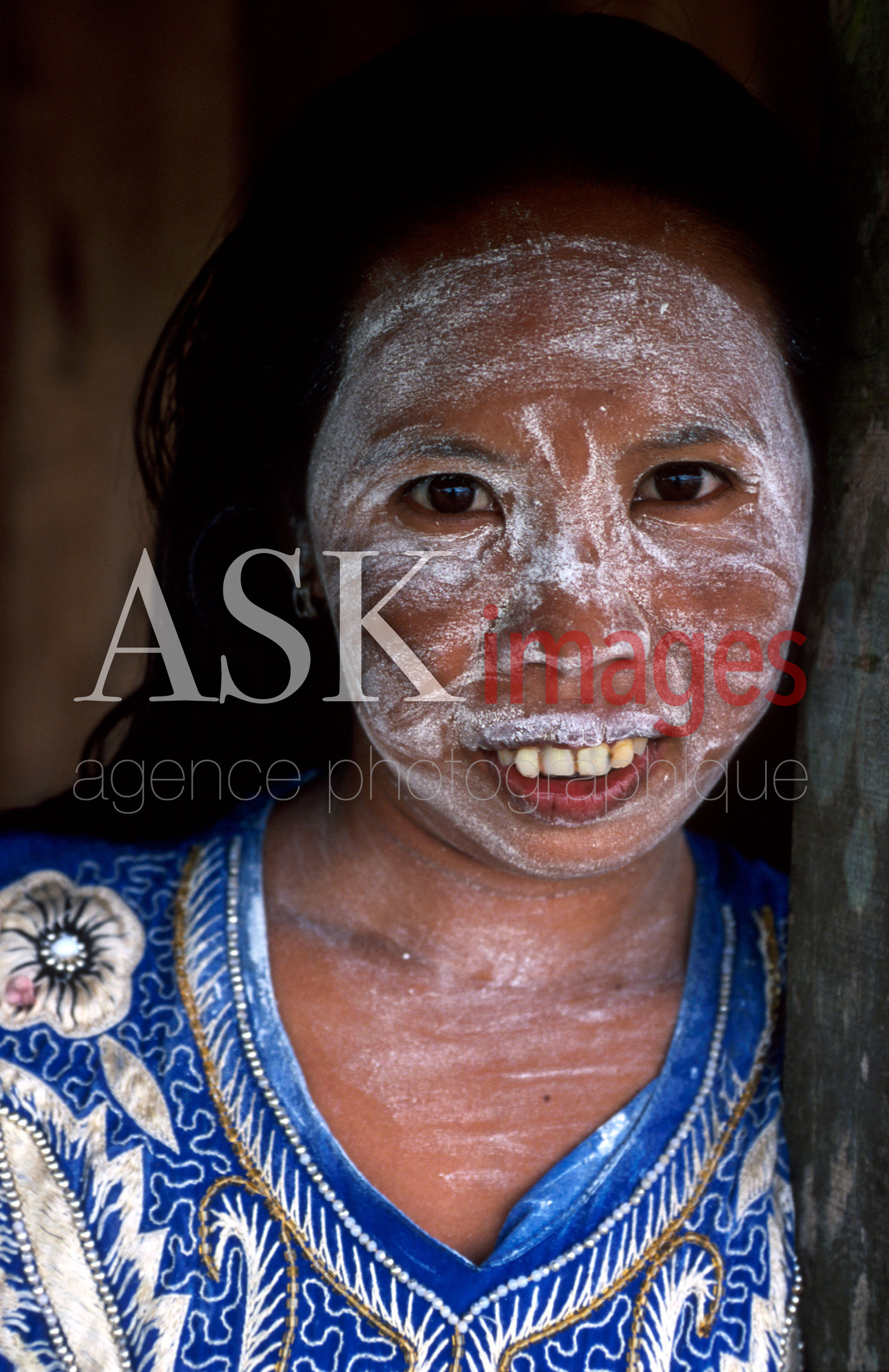 | Description | Jeune femme avec poudre blanche sur son visage, Banjarmasin |