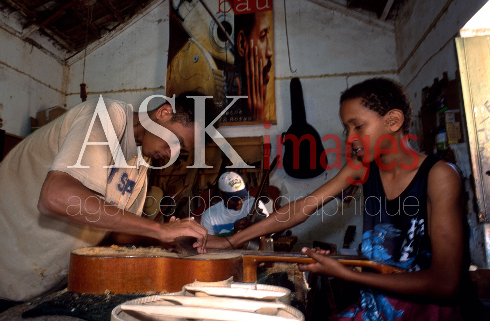 | Description | Musical instrument makers, sons of Batista, Mindelo. Sao Vicente island, Cape Verde.. |