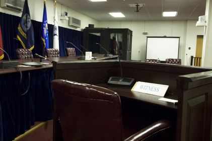 • CUBA, Guantanamo, Commission Room for tribunals from rear of room, Guantanamo.