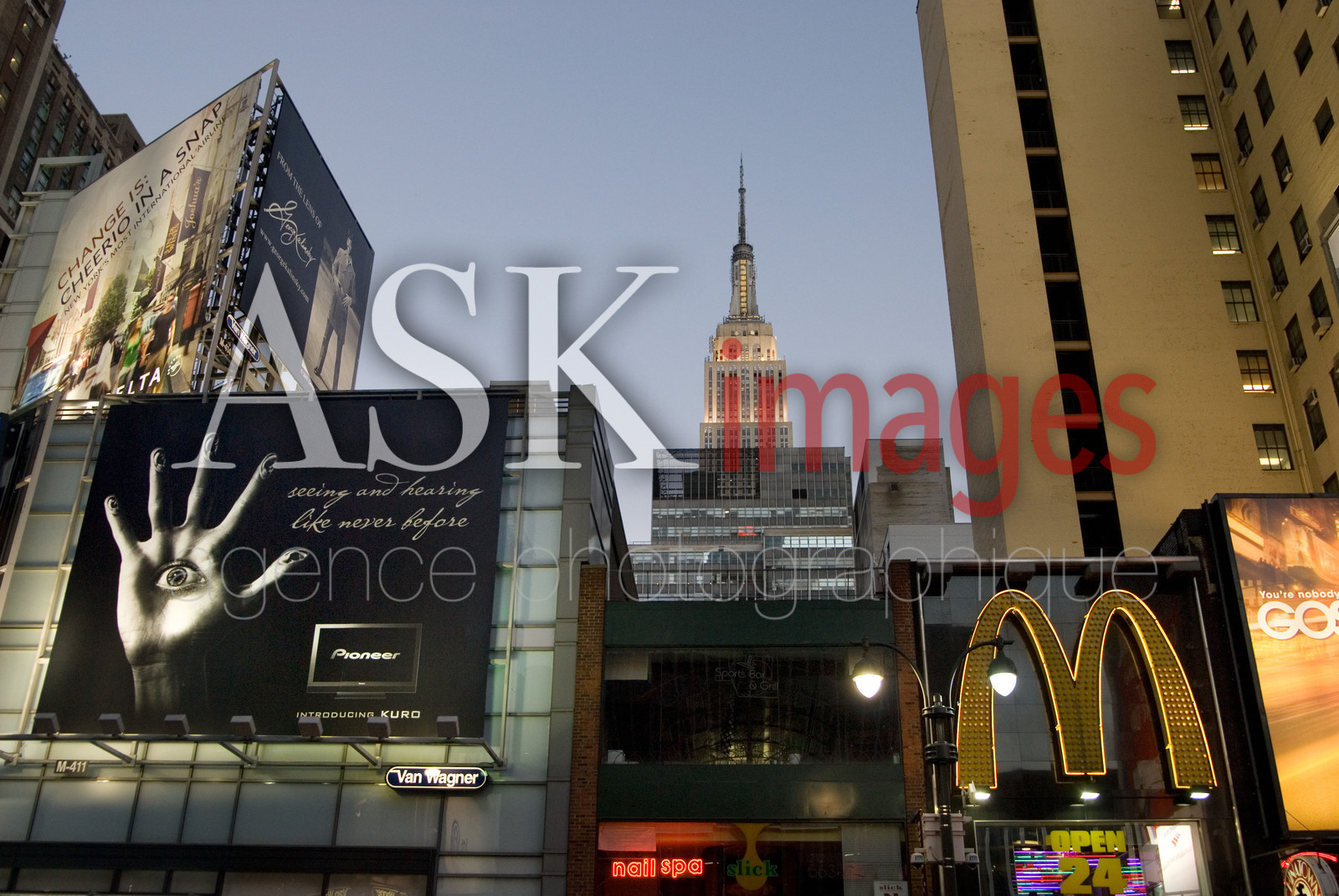 | Description | USA, New York. The nightlife at 7th avenue, some advertising on the building of the avenue. |