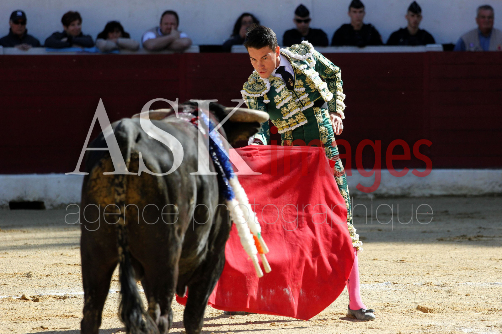 | Description | europe, france, aquitaine, landes, air sur l adour, le jeune matador, manolo vanegas pendant les novilladas de la madeleine de aire sur l adour, qui realise des passes sur un taureau de trois ans qui pese tout de meme 500 Kg, les banderilles sont planter dans le taureau |
