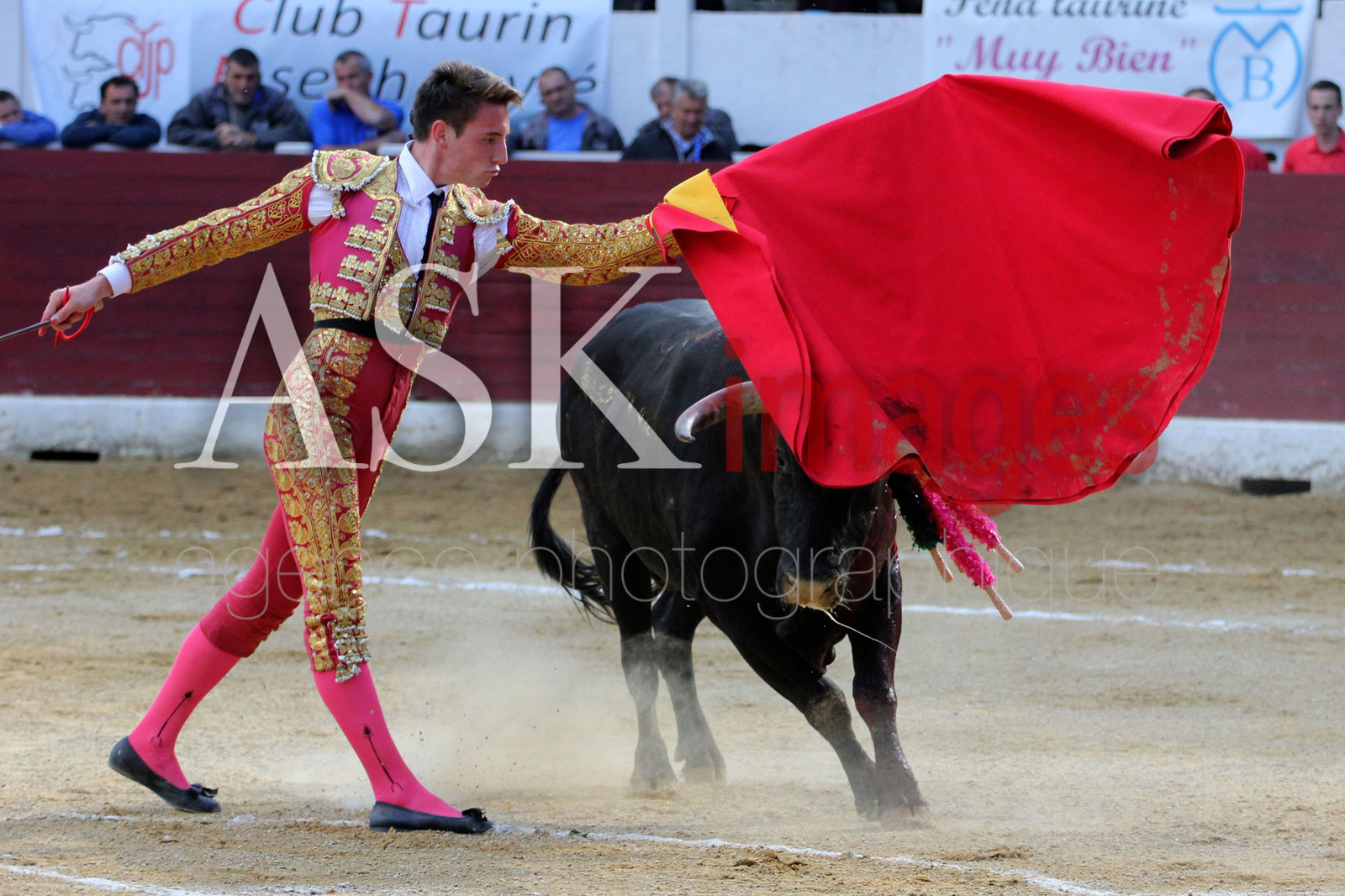 | Description | europe, france, aquitaine, landes, air sur l adour, le jeune matador, tibo garcia pendant les novilladas de la madeleine de aire sur l adour, qui realise des passes sur un taureau de trois ans qui pese tout de meme 500 Kg, les banderilles sont planter dans le taureau |