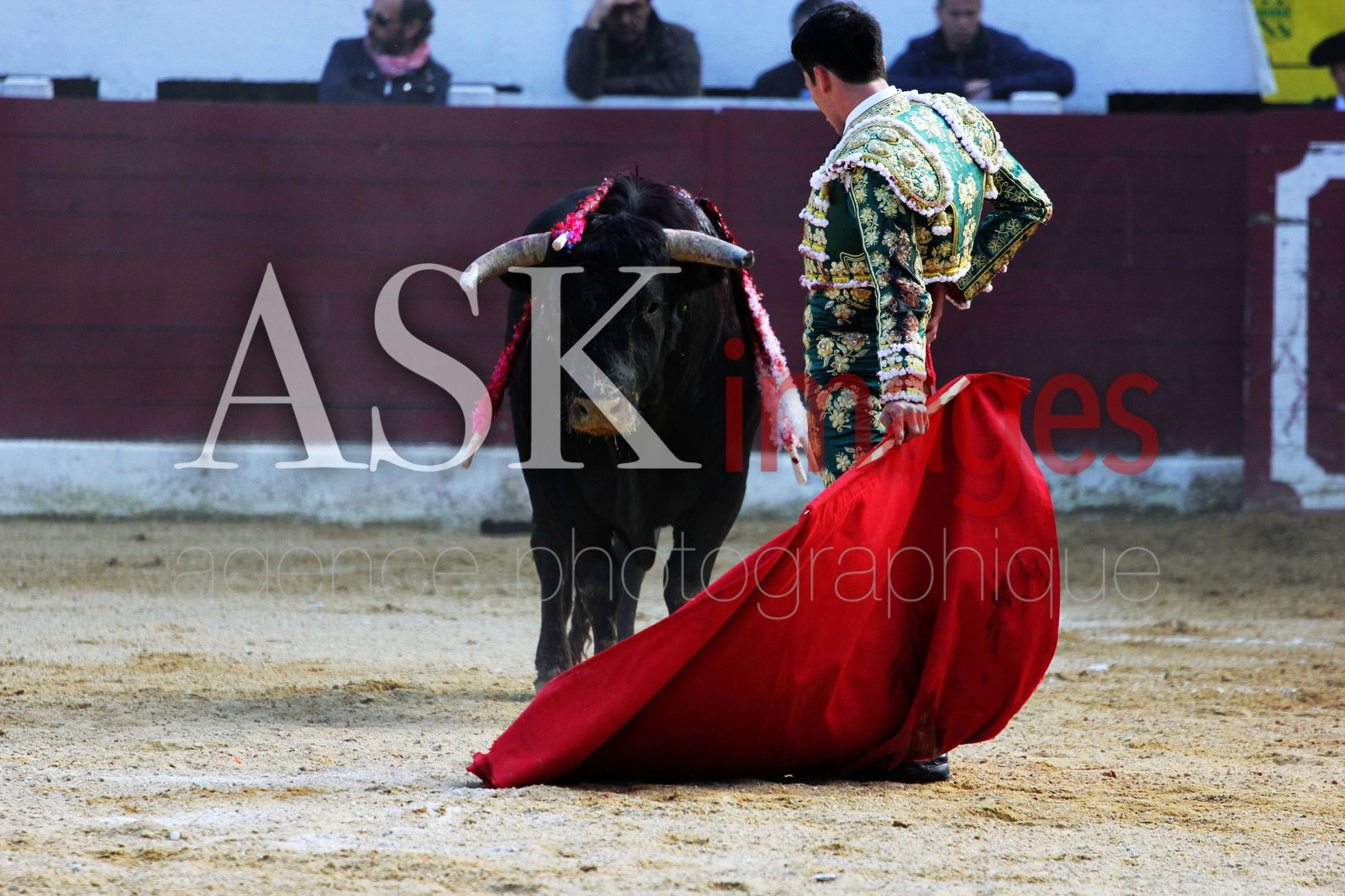| Description | europe, france, aquitaine, landes, air sur l adour, le jeune matador, manolo vanegas pendant les novilladas de la madeleine de aire sur l adour, qui realise des passes sur un taureau de trois ans qui pese tout de meme 500 Kg, les banderilles sont planter dans le taureau |